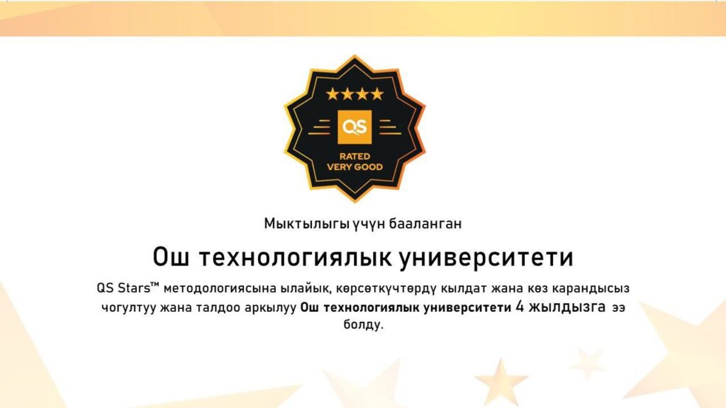 Ошский технологический университет — обладатель 4 звёзд в рейтинге QS Stars™️!