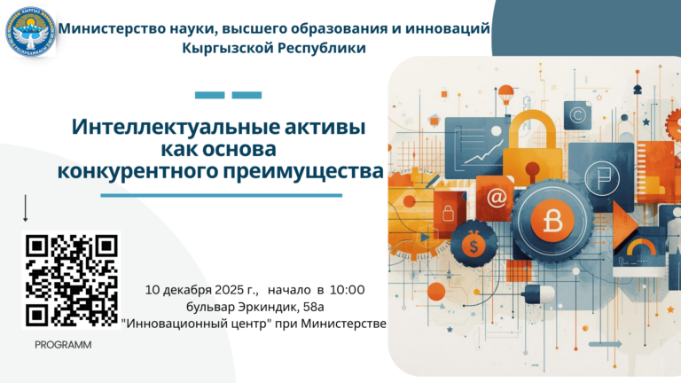 Министерство науки, высшего образования, интеллектуальной собственности и инноваций Кыргызской Республики приглашает вас принять участие в семинаре на тему: «Интеллектуальные активы как основа конкурентного преимущества».